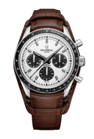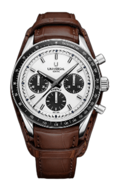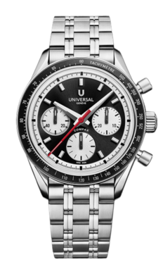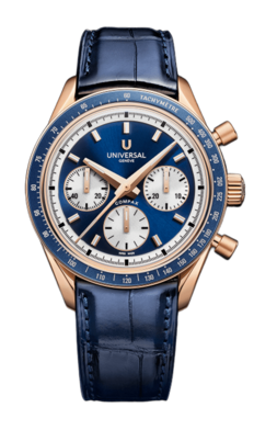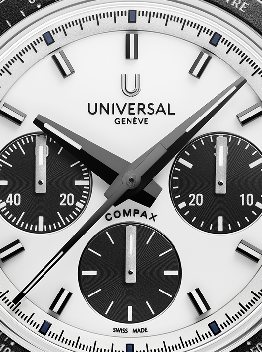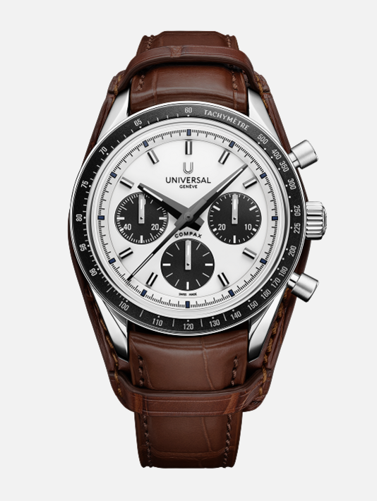 Conceived to combine performance with elegance, the Compax Prêt-à-Porter pairs the expressive design of a sporting chronograph with the technical sophistication of Universal Genève’s new UG-200 calibre. Featuring an integrated Microtor™, column-wheel chronograph and vertical clutch, the movement delivers precise, fluid operation with a “weekend-proof” 72-hour power reserve.