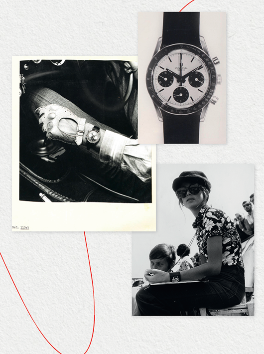 A stainless steel case frames a white lacquered dial punctuated by contrasting chronograph counters, reviving the iconic “panda” configuration long associated with the Compax. The engraved ceramic tachymeter bezel reinforces the chronograph’s racing spirit, while Super-LumiNova® indexes and hands ensure clarity. Paired with a dark brown alligator leather Bund strap, the watch nods to Nina Rindt’s distinctive styling. The brown Bund cuff offers two ways to wear the strap, adding versatility to its bold, vintage-inspired character.
