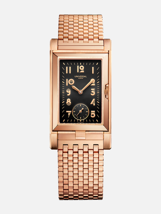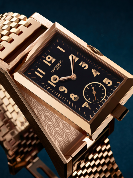 Echoing the bold geometry of Cassandre and the sculptural finesse of Tamara de Lempicka, the Prêt-à-Porter honors Universal Genève’s 1930s Art Deco legacy. The collection preserves the Maison’s historic design codes while offering a contemporary perspective, making it both a homage and a modern icon.