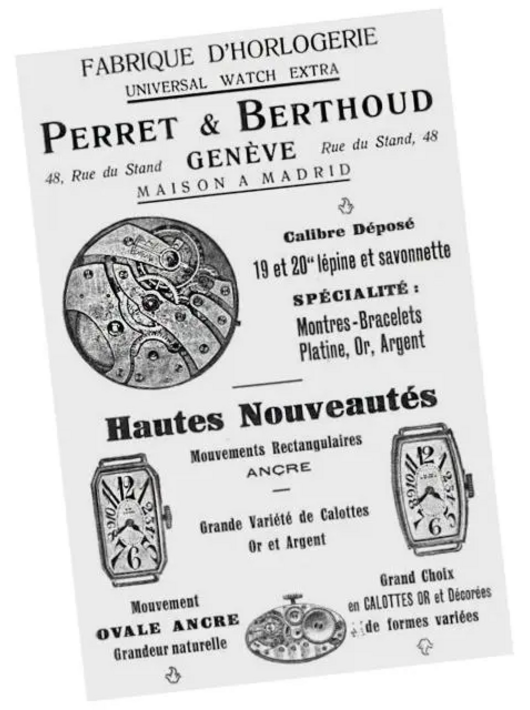 After the death of Numa-Émile Descombes, Ulysse-Georges Perret promoted Louis Berthoud, a young watchmaker with a keen sense of business, to partner. The following year, the pair presented the Universal Watch Extra, a chronograph with a 30-minute counter.