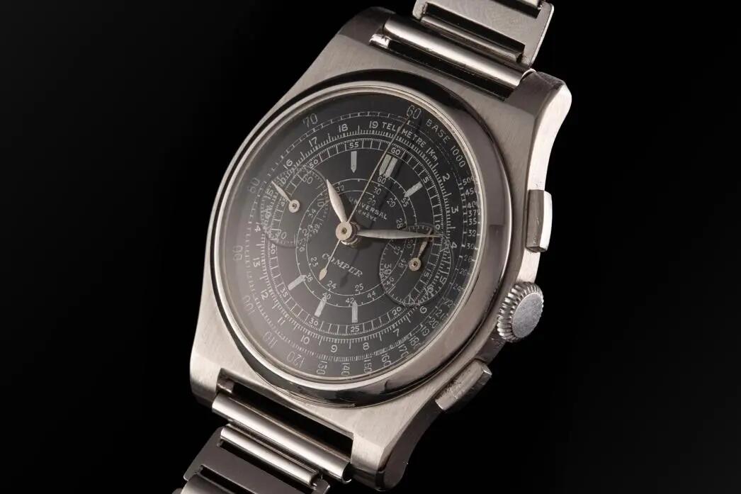In second place, he cites a Gray Ghost Compax, a very rare dial of which only a few examples were produced, likely for testing or as prototypes. Although the date on which this particular dial was fitted to its case and hands remains unclear, its breathtaking minimalism holds an undeniable appeal. “It dates from the 1940s,” he says. “But it looks like a modern watch. In terms of aesthetics, it was the first Universal to capture my imagination.”
