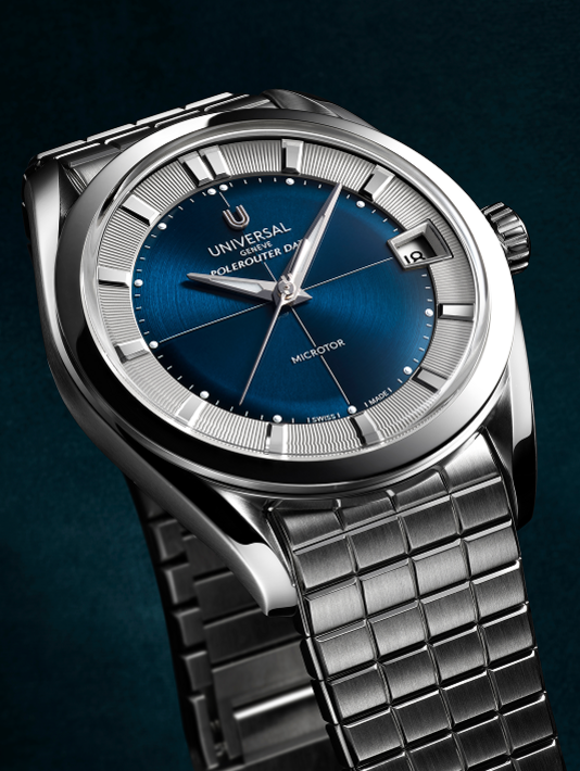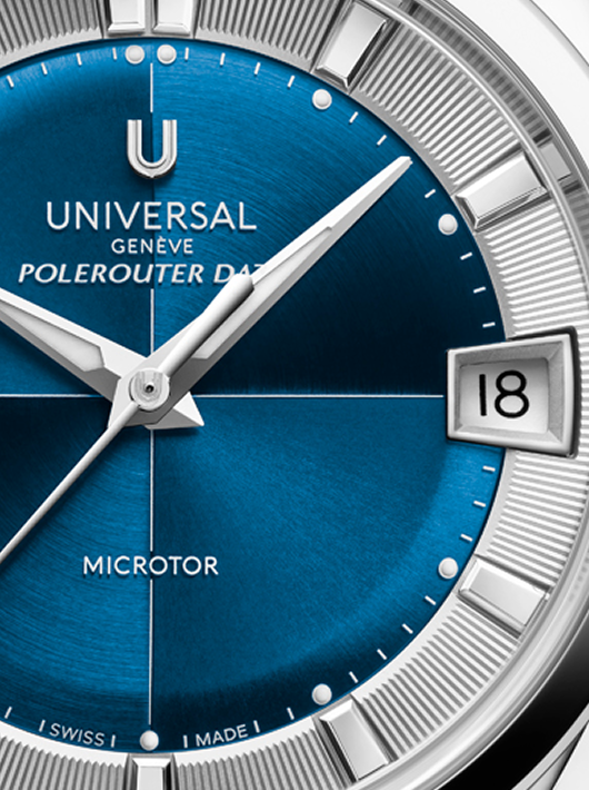 Designed for a confident everyday statement, the Polerouter Date Prêt-à-Porter 39mm balances performance with presence. Its UG-110 Microtor™ movement offers a 72-hour power reserve, while the rich interplay of textures across the dual-finish dial and outer ring adds visual depth. Every element is crafted to harmonize utility with elegance, reflecting Universal Genève’s approach to functional beauty in a slightly larger format.
