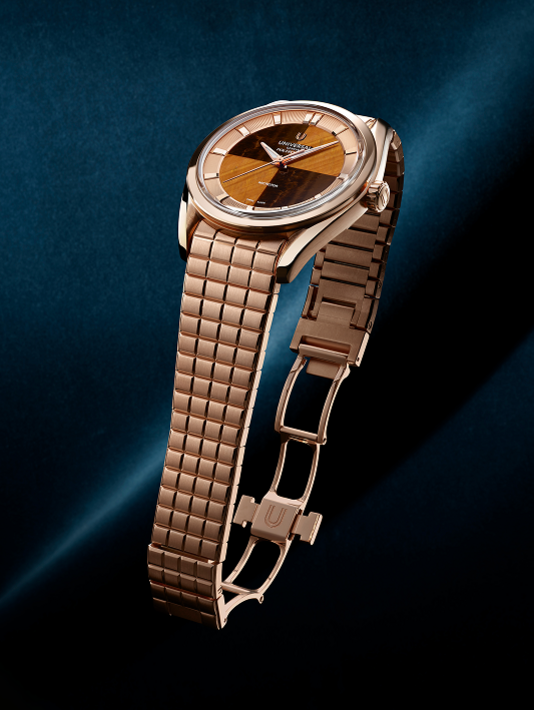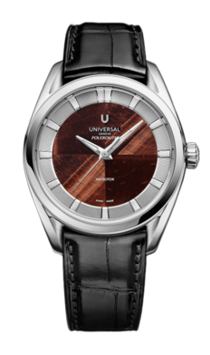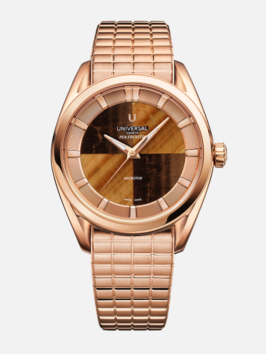 The Polerouter Hardstone editions bring natural stone into dialogue with mechanical precision. Presented in a contemporary 39 mm format and powered by the UG-110 Microtor movement with a 72-hour power reserve, each of the three variants unites tactile materiality with technical performance. The fibrous stone dials integrate seamlessly with the crosshair design, expressing Universal Genève’s enduring vision of functional beauty.