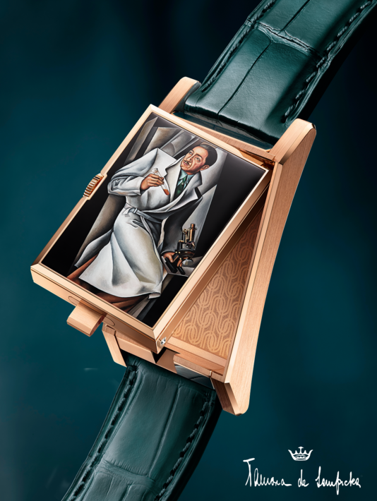 Les miniatures peintes à la main des œuvres d'art de © Tamara de Lempicka sur le fond du boîtier, réalisées en collaboration avec Isabelle Villa, font de l'horlogerie une expérience créative et sur mesure. Chaque détail reflète un savoir-faire méticuleux, transformant le garde-temps en une œuvre d'art personnalisée.